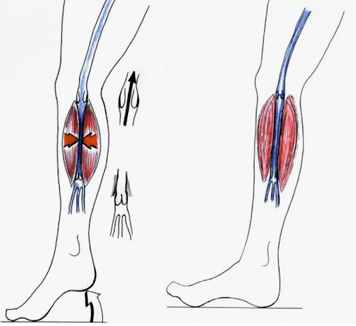 Каждый раз, когда икры сокращаются, они сжимают лимфатические сосуды, которые проходят между мышечными волокнами, и выталкивают лимфу вверх.