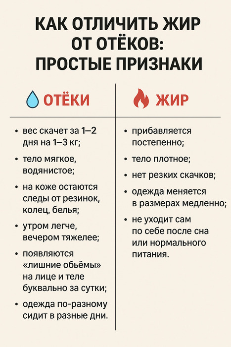 Главное отличие: 👉 Отёки приходят и уходят. Жир — нет.