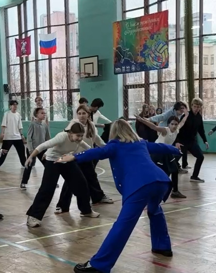 Зал взорвался смехом — не всегда всё получалось, но именно эта искренность и создала нужный эффект: подростки увидели, что дыхание — это не про скуку, не про «медитации для взрослых», а про энергию, силу, тренировку, включённость тела.